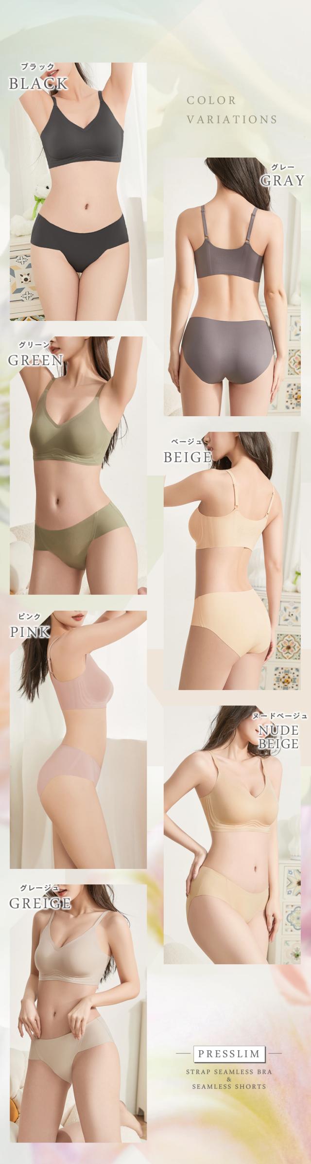 | 商品名 | プレスリム ふわリフト ストラップシームレスブラ & シームレスショーツ ノーマル 上下セット PRESSLIM FUNWARI LIFT STRAP SEAMLESS BRA & SEAMLESS SHORTS NORMAL SET |