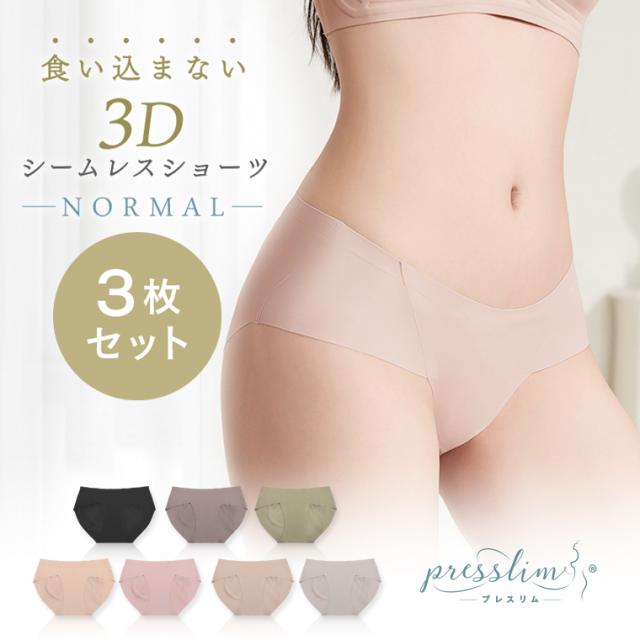 【3枚セット】プレスリム シームレスショーツ レディース ノーマル 無縫製 食い込まない 痛くない 締め付けない クロッチ 縫い目なし ひびかない かゆくならない パンツ 下着 美尻 スタンダード インナー パンティ シンプル 無地 かわいい 楽ちん くすみカラー agesugi_sfa