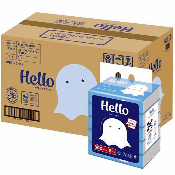 ティッシュ ティッシュペーパー ソフトパック ハロー ソフトパックティッシュ 150組×5個パック×20個 ティッシュペーパー ソフトパック Hello まとめ買い 5238-case 業務用 ソフトティッシュ スリムパック パルプ100% 蛍光染料不使用 備蓄 送料無料