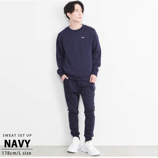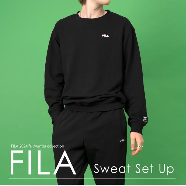 【FILA/フィラ】WEB限定 別注 ワンポイント ロゴ刺繍 セットアップ スウェット ビッグシルエット トレーナー&ジョガーパンツ 裏起毛 FH7578 |