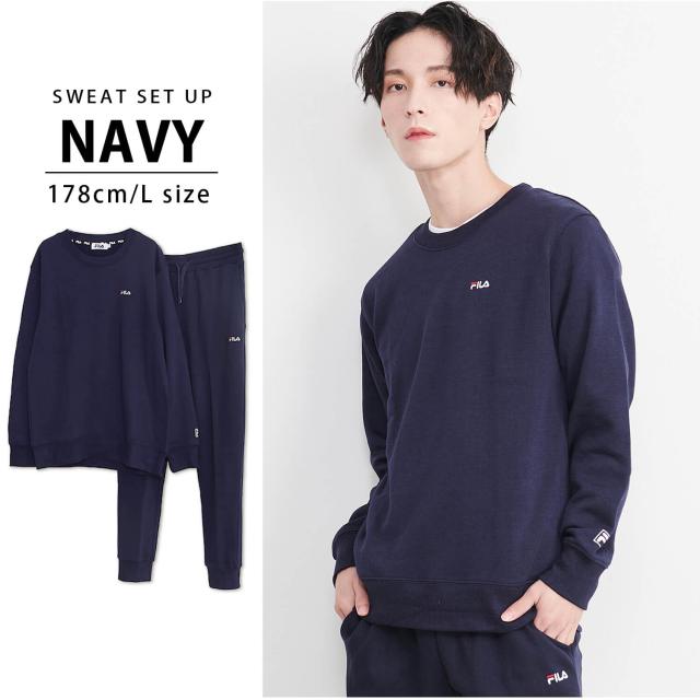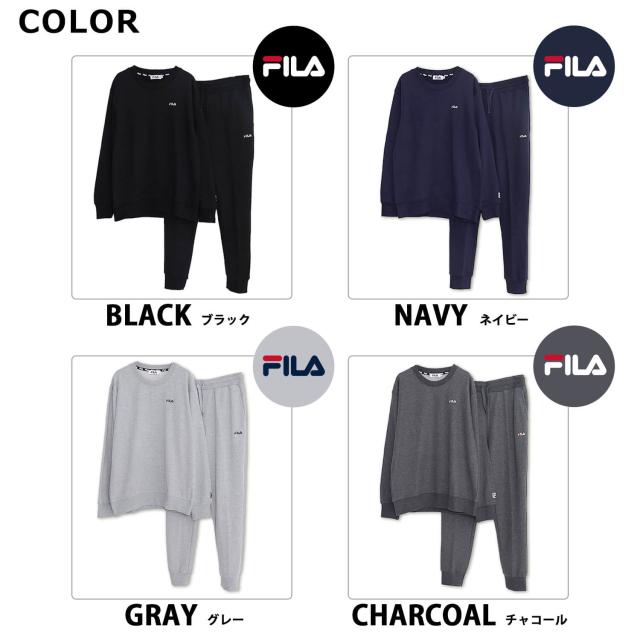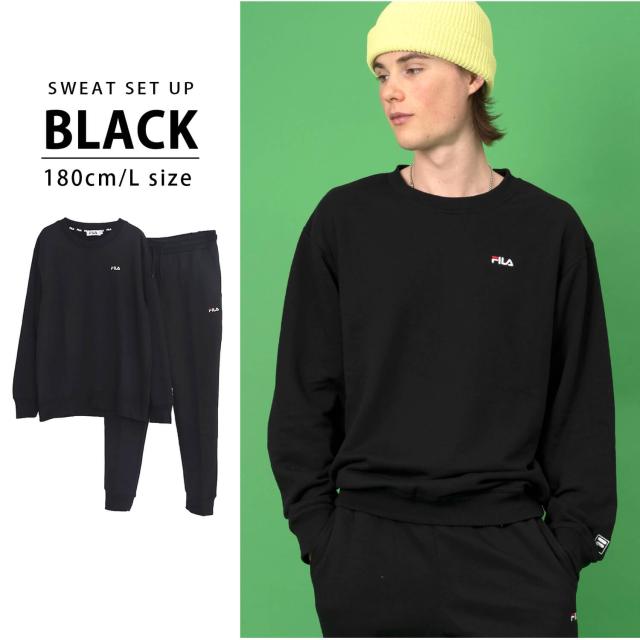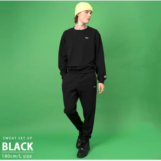【期間限定セール】FILA フィラ メンズ スウェット 上下 セット 裏起毛 あったか 秋 冬 ルームウェア パジャマ 部屋着 トレーナー シンプル 無地 黒 紺 2024fw 別注