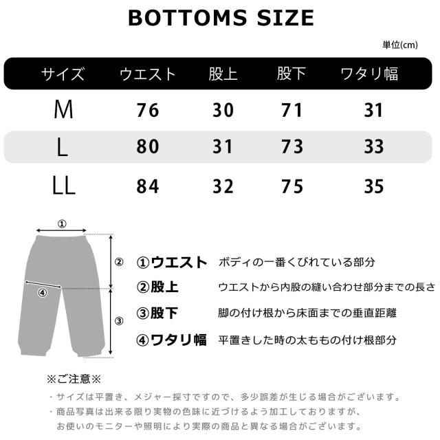 | パンツサイズ(cm) | ウエスト | 股上 | 股下 | ワタリ幅 |