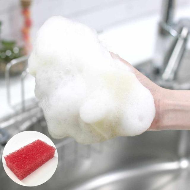 傷つけにくくしっかりと洗える赤星スポンジ