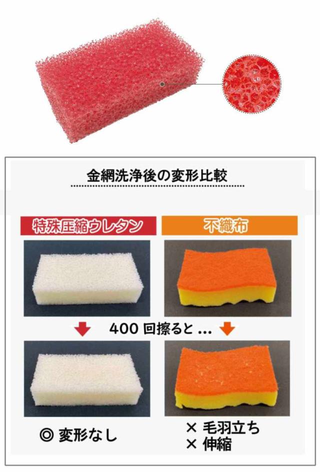 骨格の太いエステルスポンジを使用することで、空気が通りやすく乾きが速く衛生的です。耐久力にも優れ、へたりにくいので従来のスポンジに比べ長持ちします。スポンジ部分には抗菌加工を施しています。