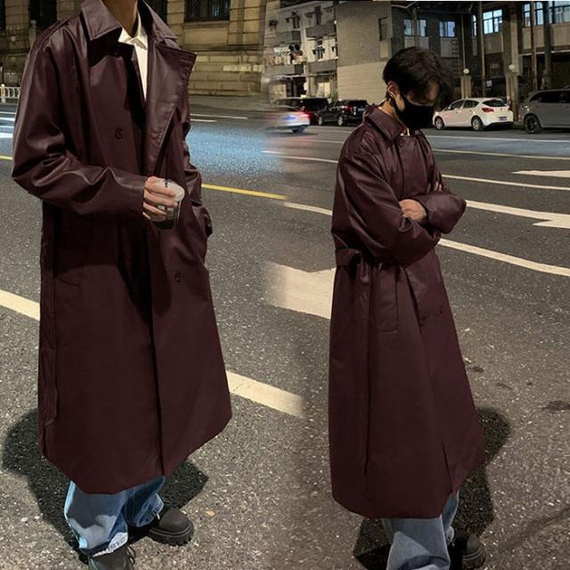 PU フェイクレザート レザージャケット ロングジャケット スプリングコート アウター レディース メンズ ロングコート 春アウター カジュアル ベルト付き ジャケット 着やせ 防風 シンプル 高品質 春秋 お洒落 ブラック ベージュ ブラウン ワインレッド de009x0x0m5