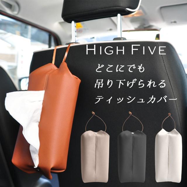 【限定500円OFF】【1,980円→1,480円】HIGH FIVE 吊り下げられるティッシュカバー 車 2way 壁掛け 横置き 持ち運び お手入れしやすいPUレザー 掛ける 縦 吊るす ティッシュケース ボックスティッシュ 収納 車用品 プレゼント ギフト