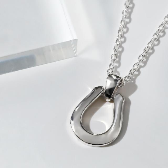 ■商品名:シンプル カーブ ホースシュー ペンダント ネックレス メンズ 2mmアズキチェーン 馬蹄 シルバー925 アクセサリー シンプル レディース ユニセックス シルバーペンダント