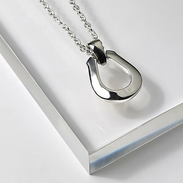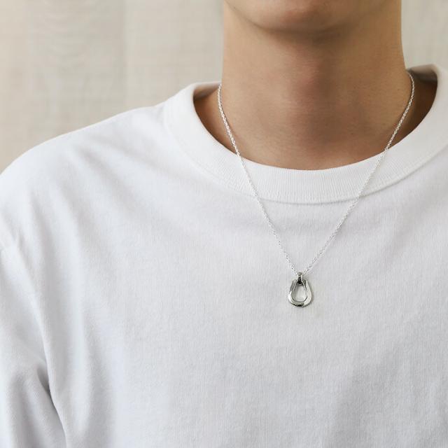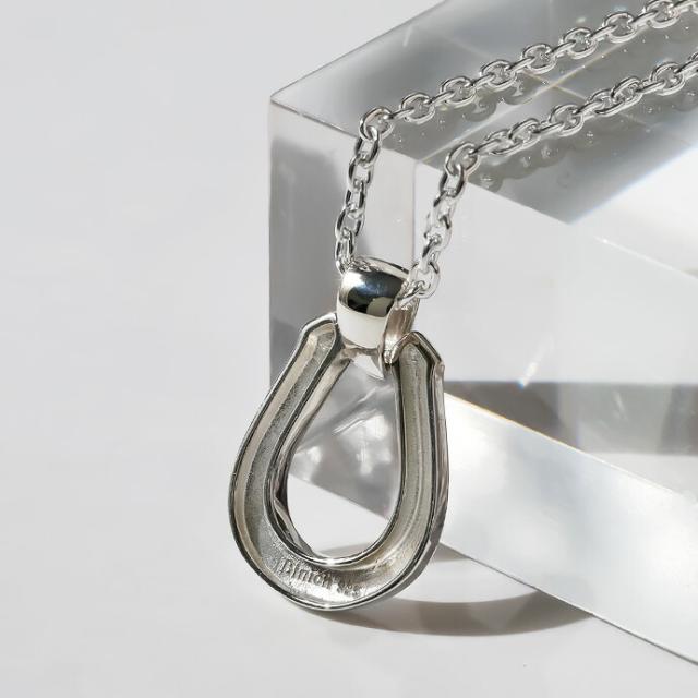 模様などの余計な装飾が無い、シンプルなホースシュー(馬蹄)型ペンダント。ペンダント表面がゆるく湾曲しており、平面には出せないなめらかな輝きが楽しめます。ラッキーモチーフとして男性女性共に人気のホースシューデザインなので、大切な方への贈り物やペアでの着用もオススメ。カジュアルにもキレイめにも合う、コーデを選ばずこれ1つで様になるペンダントです。
