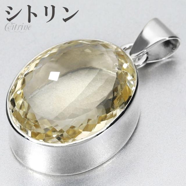 シトリン シルバー ペンダントトップ オーバル カット チェーンなし 天然石 パワーストーン ペンダント トップ ヘッド 一粒 シトリンペンダント 11月
