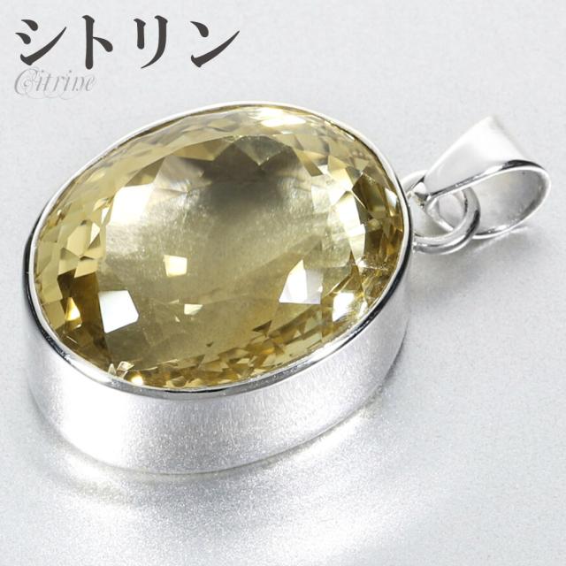 シトリン シルバー ペンダントトップ オーバル カット チェーンなし 天然石 パワーストーン ペンダント トップ ヘッド 一粒 シトリンペンダント 11月
