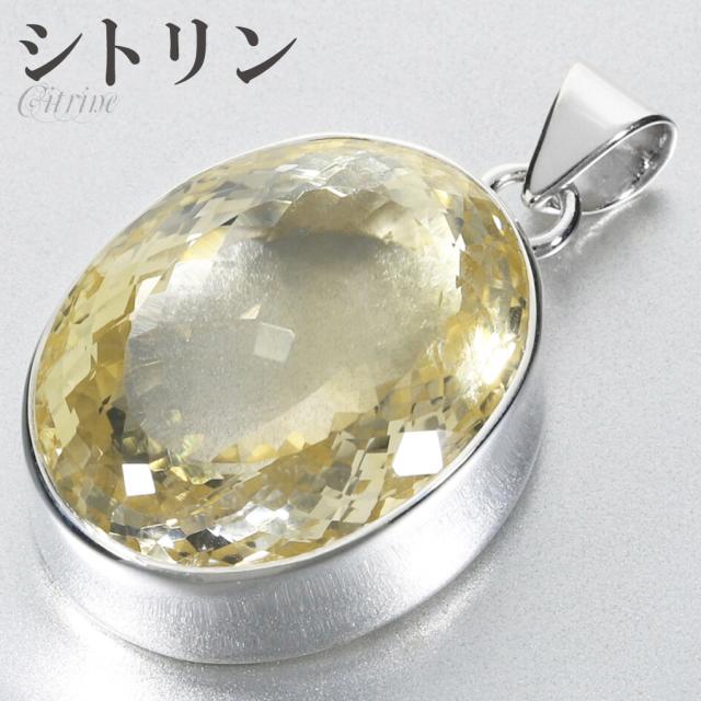 シトリン シルバー ペンダントトップ オーバル カット 大粒 チェーンなし 天然石 パワーストーン ペンダント トップ ヘッド 一粒 シトリンペンダント