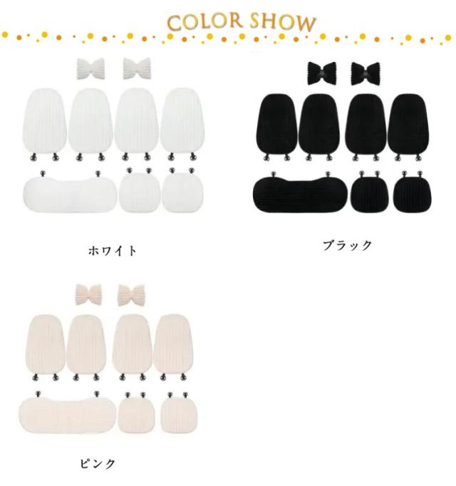 | サイズについての説明 | 9点セット【前座席用2枚+後部座席用1枚+背もたれ4枚+リボンクッション2個】 前座席サイズ:50*49cm 後部座席:130*50cm 背もたれクッションサイズ:45*60cm |