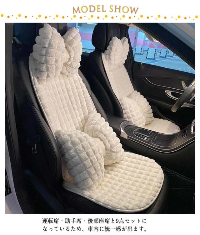 9点セット フェイクファー かわいい もこもこ 汎用 長毛 カーシートクッション 車 リボン 秋冬 シートカバー シートクッション あたっか 暖かい カーシートカバー 防寒 座席シート 車座布団 軽自動車 カーシートカバー 運転席 助手席 後部座席 車用品 無地