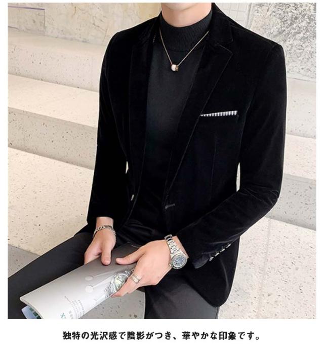 ベロア ジャケット メンズ 40代 冬 スーツ ベロアジャケット ビジネス メンズジャケット テーラード 秋 厚手 テーラードジャケット アウター カジュアル スリム 細身 上品 光沢感 ドレススーツ パーティースーツ 30代 一つボタン 50代 大きいサイズ