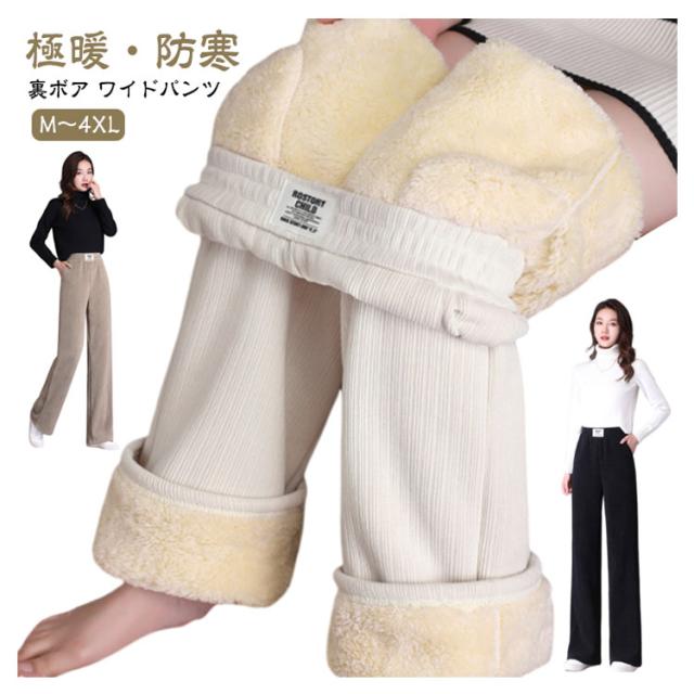 裏ボア 冬服 ワイドパンツ 裏起毛 ストレートパンツ 裏ボア レディース 超厚手 カジュアル ボア ロングパンツ 暖かい 秋冬 暖パン 防寒 あったか ズボン 大きいサイズ ベージュ黒 ブラック おしゃれ