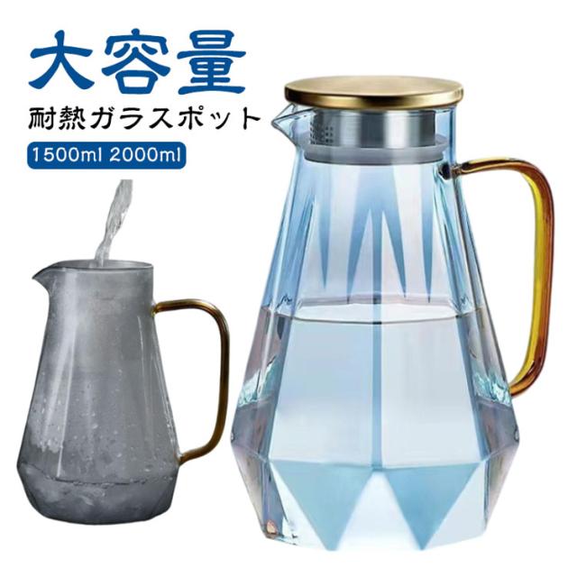 耐熱ガラス 直火可 ガラスピッチャー ガラスポット 1500ml 紅茶 ガラスピッチャー 耐熱 花茶 冷水筒 ティーポット コーヒーサーバー 持ち手 ガラス急須 緑茶 フルーツティー 蓋付き 2000ml 麦茶 おしゃれ お茶 北欧 ダイヤモンド ギフト