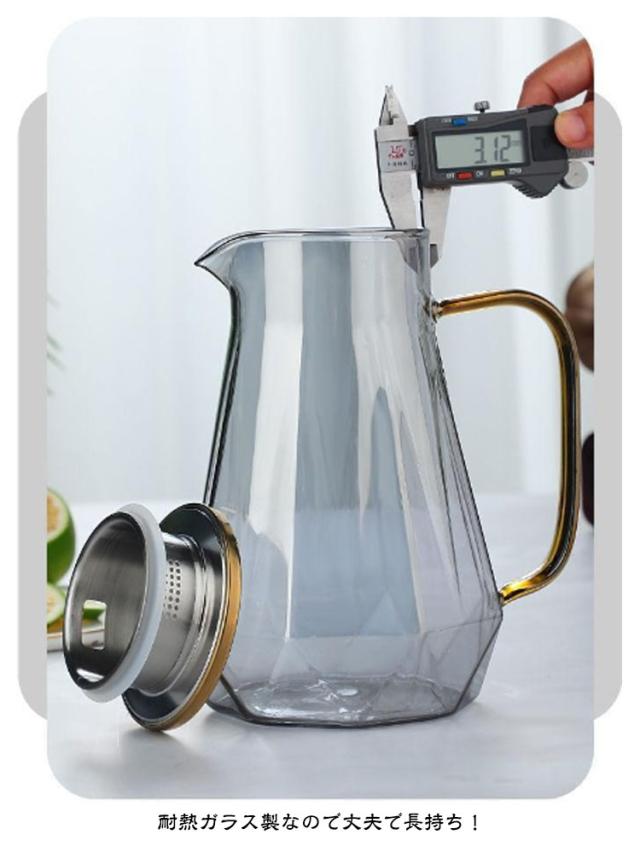 | 【耐熱ガラスポット】【1500ml 2000ml】【大容量】 耐熱のホウケイ酸ガラスで作られて、直火可能なガラスポットです。 麦茶、紅茶、ジュース、コーヒー、ミルクなどの飲み物を淹れたい時にご気楽にお使えいただけます。 ダイヤモンドのアイデアでデザインされており、エレガントで美しく、お部屋の飾りとして、また食事の際の視覚的な楽しみにもなります。 耐熱ガラスので、温かい飲み物にも冷たい飲み物にも使える耐熱ガラス製のピッチャーです ガラス製のハンドルはしっかりと握ることができます。 ボトルの口径が大きく、手が直接差し込めて清潔できます。 耐熱ガラス製なので丈夫で長持ち! 熱いものも、冷たいものも両方使えるので、年中愛用していただけます。 ご注意: 加熱する場合は、強火を使わなでください。 空焚きは絶対にしないでください! ※IH使用不可 | |