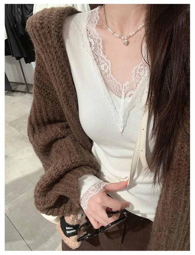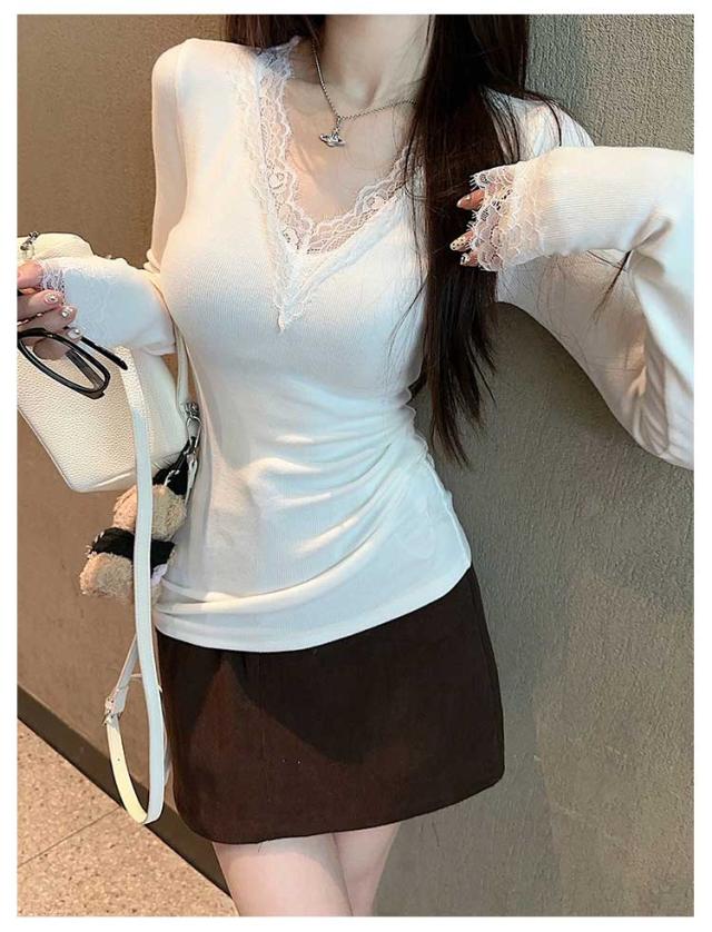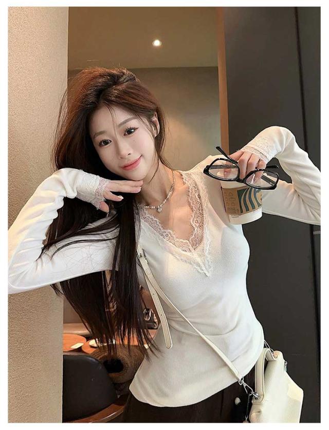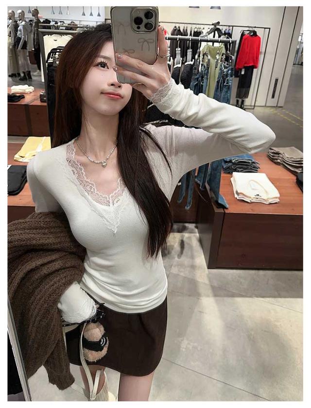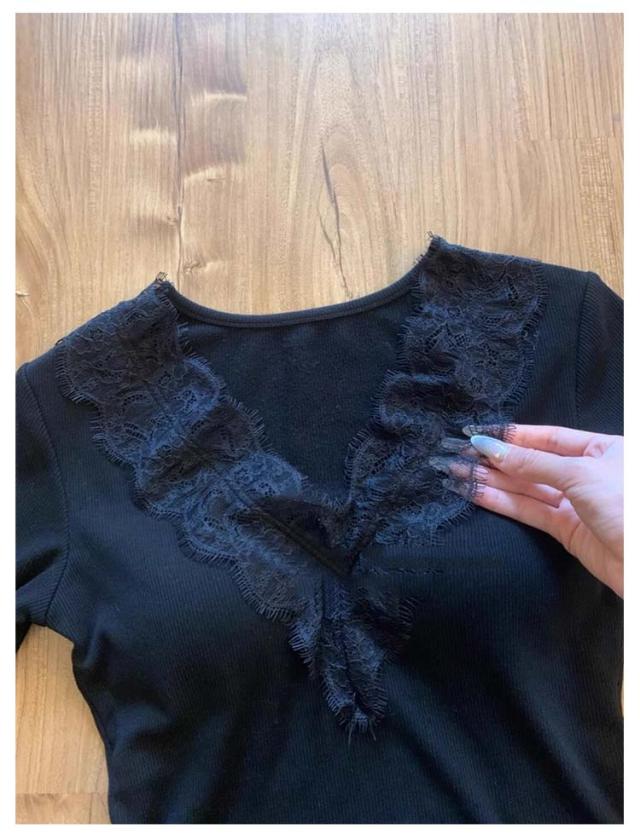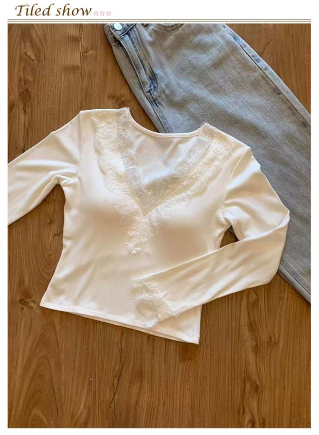 クルーネック ナイトウェア カットソー レース レディース 部屋着 肌着 Tシャツ カップ付き インナー カップ付き 長袖 可愛い 重ね着 vネック 下着 トップス 着?せ かわいい パッド付き ジュニア ギフト 快適