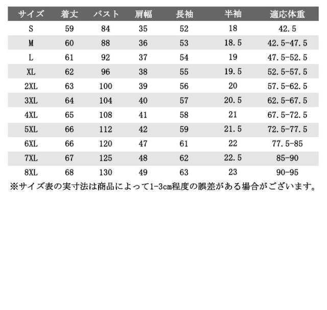 | サイズ | S M L XL 2XL 3XL 4XL 5XL 6XL 7XL 8XL |