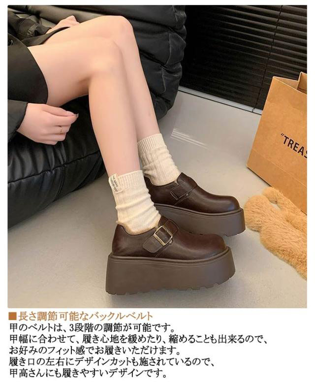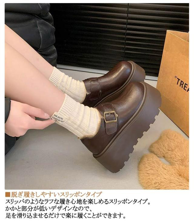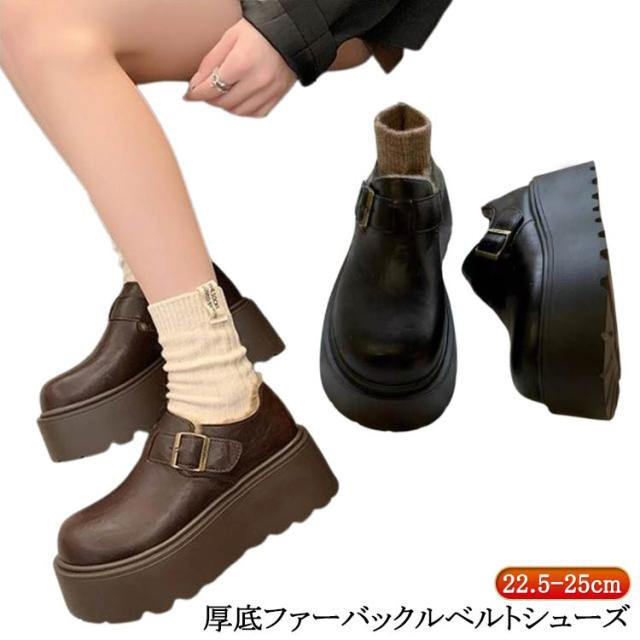 | 厚底ファーバックルベルトシューズ。 ■あったか内側素材 つま先までたっぷりとフェイクファーを使用しているので、寒い日のお出かけも安心。 風を通しにくく熱を逃しにくいので、冷たい空気をシャットアウトします。 ■歩きやすい厚底ソール仕様 しっかりと厚みのあるプラットフォームソールは、安定感があり歩きやすい。 ソールにボリューム感を持たせる事で、自然な脚長効果も期待できます。 ■脱ぎ履きしやすいスリッポンタイプ スリッパのようなラフな履き心地を楽しめるスリッポンタイプ。 かかと部分が低いデザインなので、足を滑り込ませるだけで楽に履くことができます。 ■長さ調節可能なバックルベルト 甲のベルトは、3段階の調節が可能です。 甲幅に合わせて、履き心地を緩めたり、縮めることも出来るので、お好みのフィット感でお履きいただけます。 履き口の左右にデザインカットも施されているので、甲高さんにも履きやすいデザインです。 | |