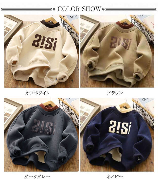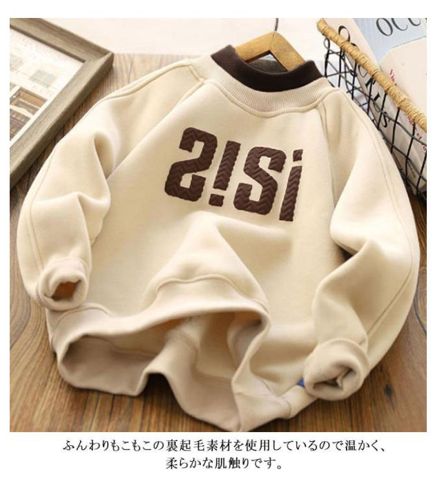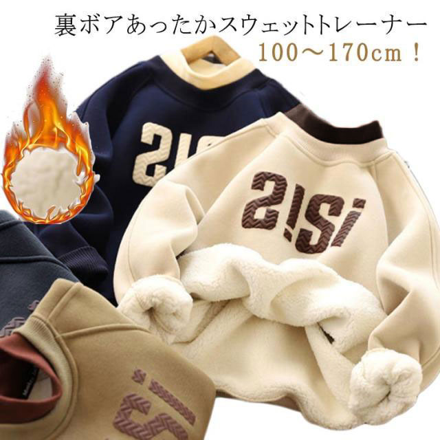 | 100〜170cm!裏ボアあったかスウェットトレーナー ふんわりもこもこの裏起毛素材を使用しているので温かく、柔らかな肌触りです。 通園・通学・お出かけなど、ディリー使いにピッタリな一着です。 | |