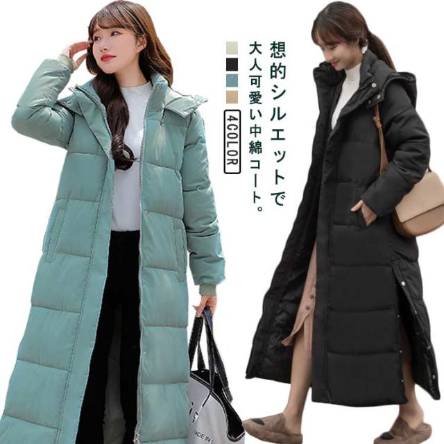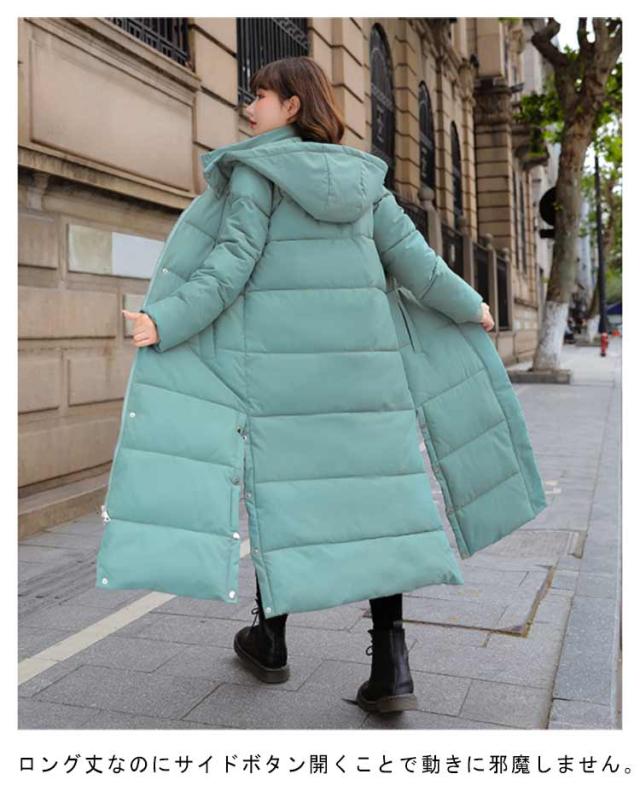 スリム 中綿コート レディース 厚手 ベンチコート 中綿 防寒 アウター ロングコート 保温 フード付き コート ロング スリット 冬服 防風 軽量 中綿コート 秋冬 お出かけ サイドボタン あたっか キレイめ 20代 30代 40代