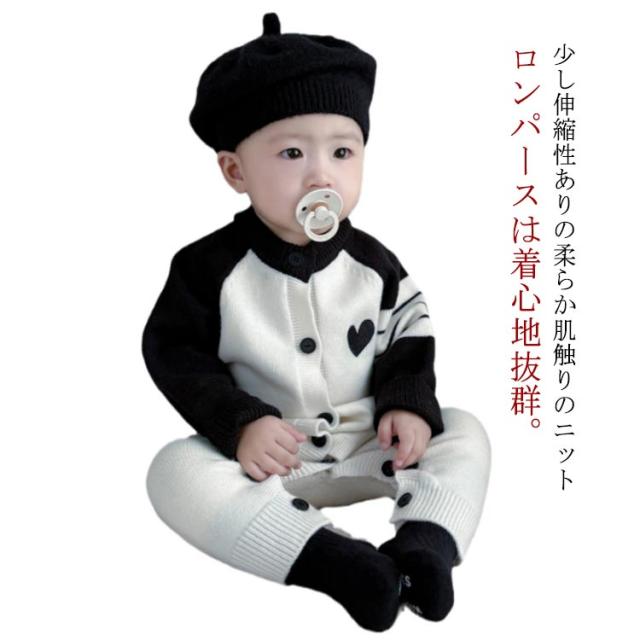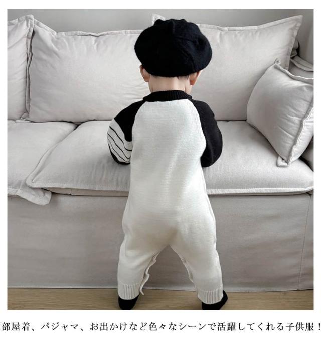 ロンパース 長袖 カバーオール ニット ベビー服 男の子 女の子 ロンパース ベビー キッズ ボディスーツ ベビーロンパース 赤ちゃん 暖かい セーター 前開き 子供服 新生児 洋服 おしゃれ 可愛い 66cm 73cm 80cm 90cm 100cm