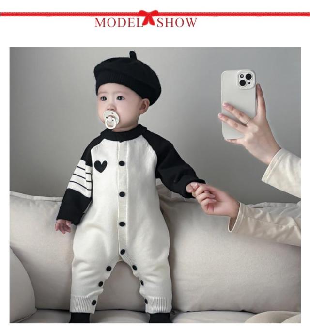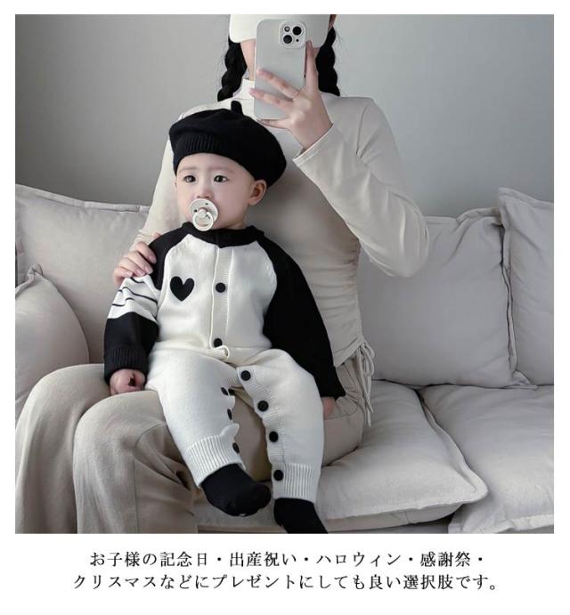 | 少し伸縮性ありの柔らか肌触りのニットロンパースは着心地抜群。 肌ざわり柔らかな生地で、赤ちゃんの敏感な肌にやさしいです。 首元から足までのボタン式で、お着替えやおむつ替えがラクラク。 秋冬季節の変わり目にオススメ!冬場はパジャマやインナーとしても大活躍しております♪ 部屋着、パジャマ、お出かけなど色々なシーンで活躍してくれる子供服! お子様の記念日・出産祝い・ハロウィン・感謝祭・クリスマスなどにプレゼントにしても良い選択肢です。 | |