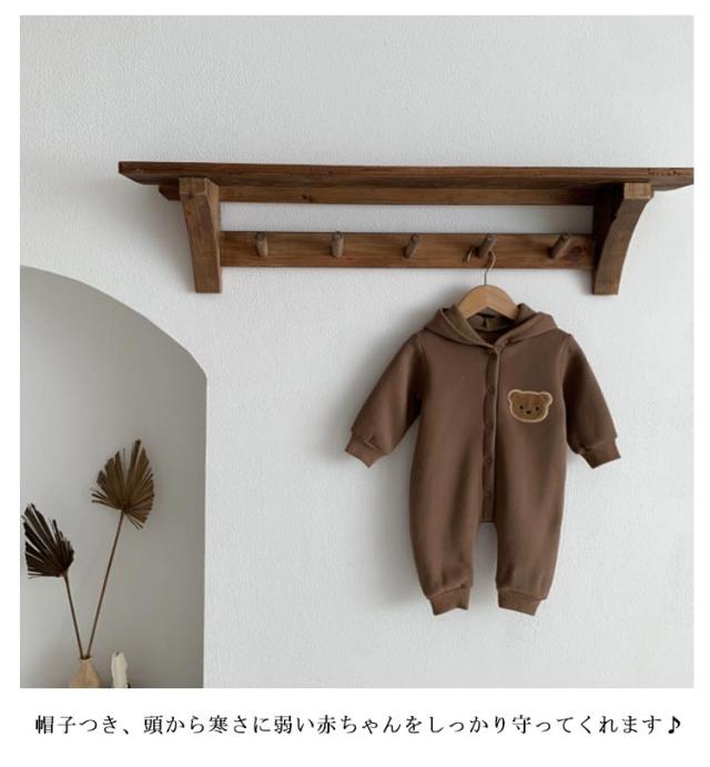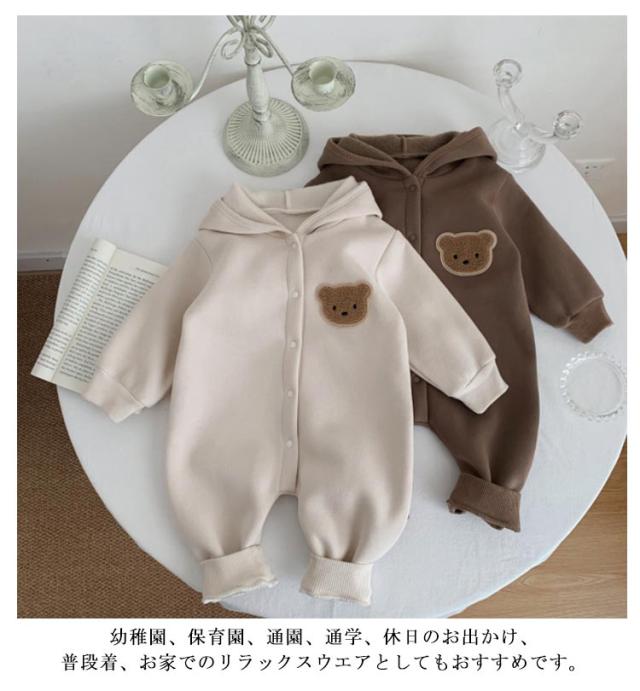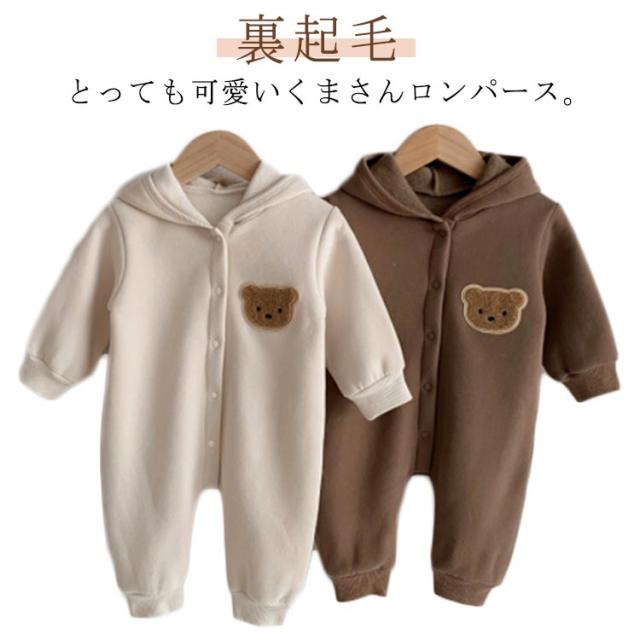 ロンパース パジャマ 裏起毛 くまさん カバーオール ベビーロンパース くまさん 防寒 フード付き ルームウエア ベビー服 出産祝い ジャンプスーツ 赤ちゃん 着ぐるみ 普段着 男の子 女の子 百日祝い 秋冬 洋服 可愛い かわいい おしゃれ