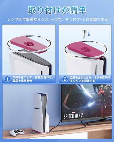 ・PS5/PS5 Slim/PS5 PROスタンドPS5 Slim Disc&Digital / PS5 Disc&Digital / PS5 PRO用の縦型ドックスタンドです。底面には滑り止めのシリコンリングと本体固定用のネジが付属しており、これによりPS5コンソールへの意外な衝撃による落下を防止し、安定した位置に保ちます。