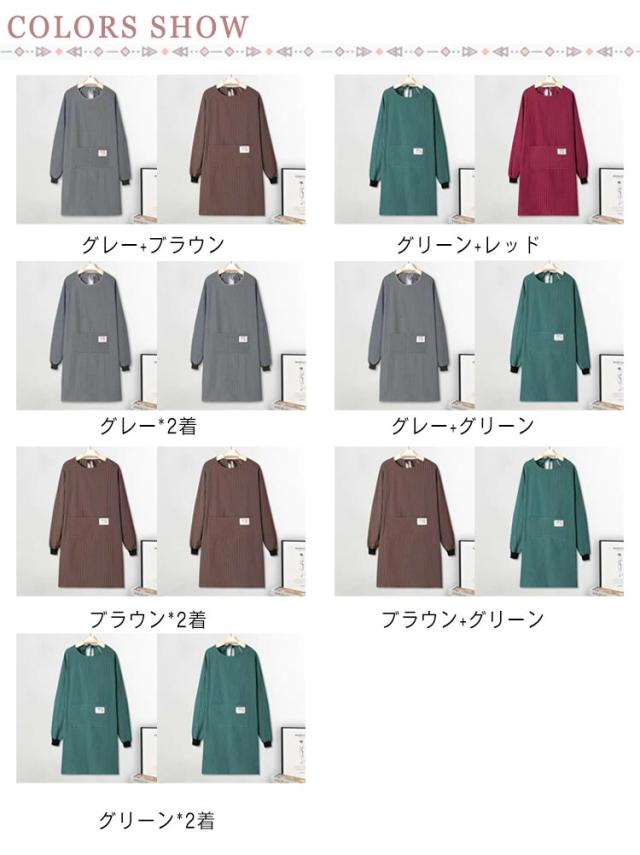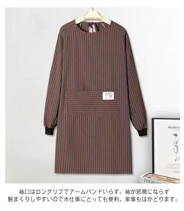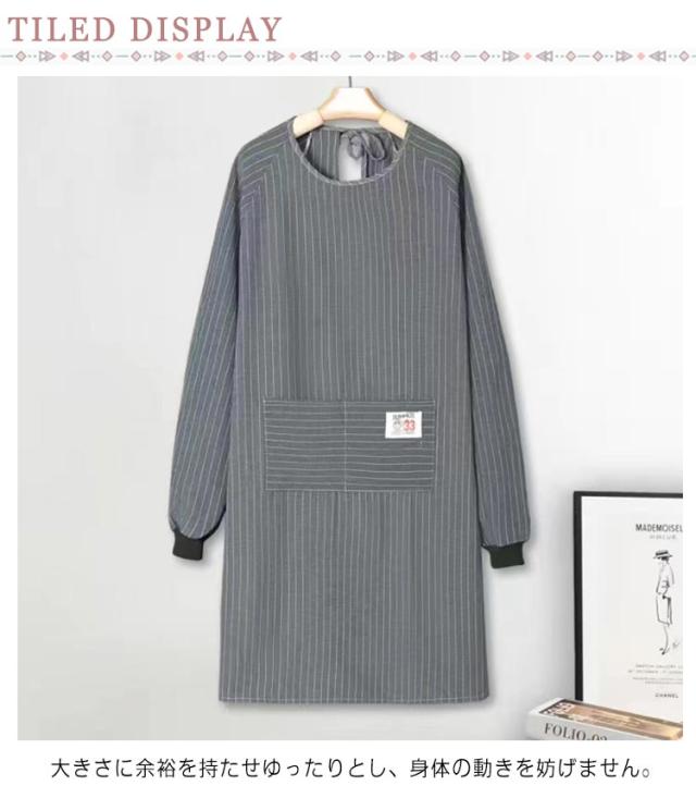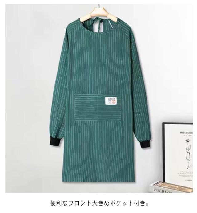 レディース 大きいサイズ ストライプ柄 北欧 【送料無料】ポケット付き ロング ストライプ柄 エプロン おしゃれ ロング エプロン 2着セット レディース 大人用 長袖 スモック 2枚セット エプロン 北欧 割烹着 ポケット付き 介護士 保育士 飲食店