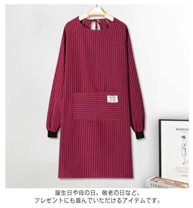 | 着丈は約95cmで長めの作り。袖口から体全体を汚れからしっかり守ります。 大きさに余裕を持たせゆったりとし、身体の動きを妨げません。 袖口はロングリブでアームバンドいらず。袖が邪魔にならず腕まくりしやすいので水仕事にとっても便利、家事もはかどります。 便利なフロント大きめポケット付き。 誕生日や母の日、敬老の日など、プレゼントにも喜んでいただけるアイテムです。 | |
