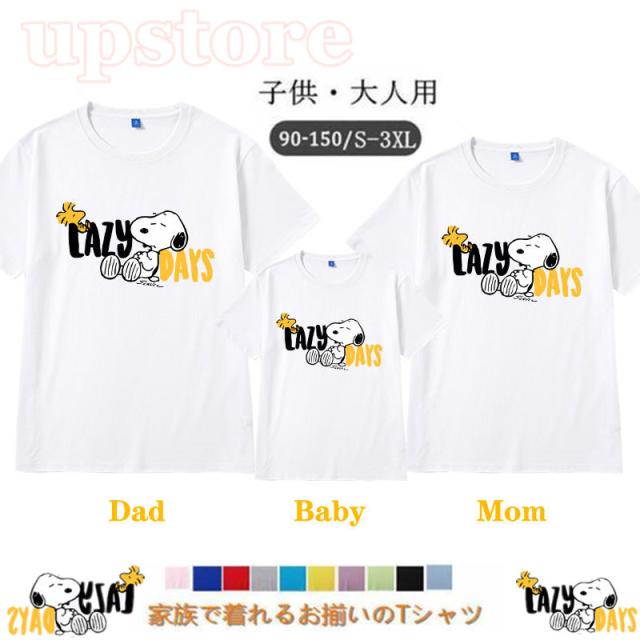 スヌーピー 12colors ディズニー Tシャツ ペアルック tシャツ 親子 半袖 ペア レディース Tシャツ スヌーピー カップル メンズ 子供 可愛い 恋人 家族お揃い T-shirt