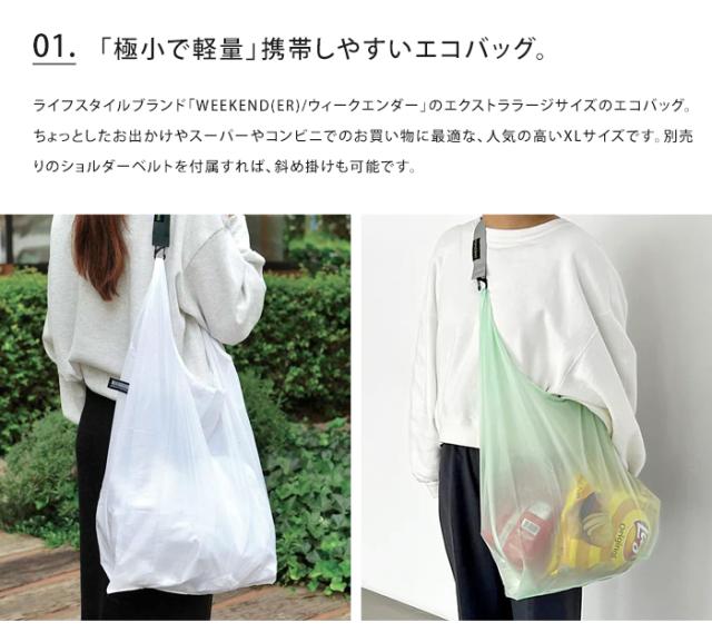 メール便送料無料 WEEKEND(ER) エコバッグ HUNGBAG XL 【 エコバック 折りたたみ マチ付き コンパクト 簡単 軽量 ミニ 大容量 おしゃれ レジ袋 コンビニサイズ カラビナ かわいい ナイロン マイバッグ ブランド ポケット レディース A4 2way ギフト プレゼント】
