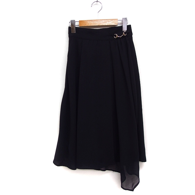 【中古】マジェスティックレゴン MAJESTIC LEGON ビットスカート イレギュラーヘム ミディ丈 タック フレア S ブラック
