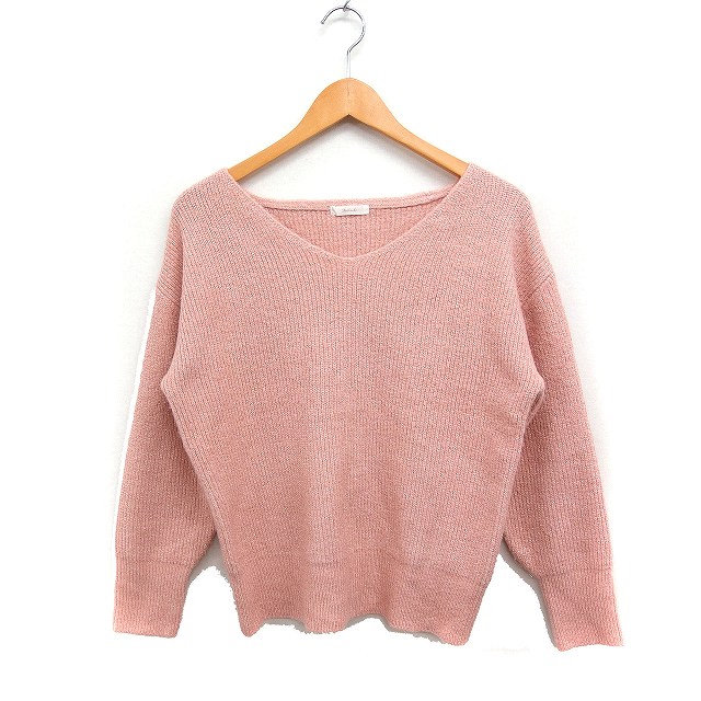 【中古】テチチ Te chichi Vネック ニット セーター 長袖 ラメブレンド F ピンク /FT22 レディース