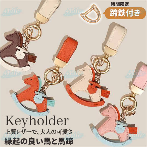 【蹄鉄付き】馬キーホルダー 蹄鉄 幸運 福運 金運アップ かわいい 縁起の良い馬 キーホルダー 皮革 バッグチャーム 飾り うま モチーフ 革小物 軽量 薄型 小型 おしゃれ レザーキーリング キーイング 車の鍵 かぎ 財布 母の日 プレゼント 午年 贈り物