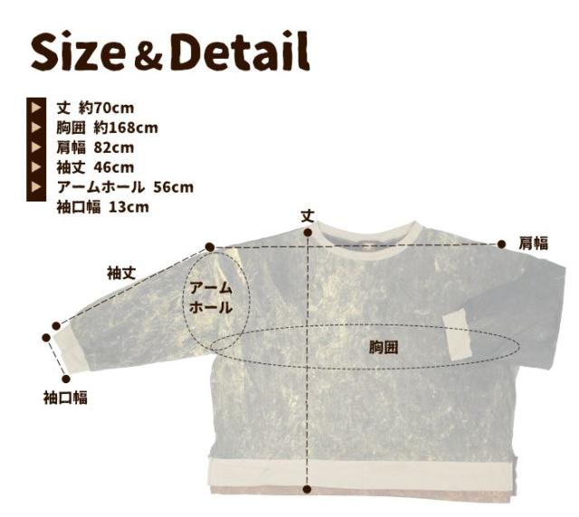 丈 約70cm 胸囲 約168cm 肩幅 82cm 袖丈 46cm アームホール 56cm 袖口幅 13cm