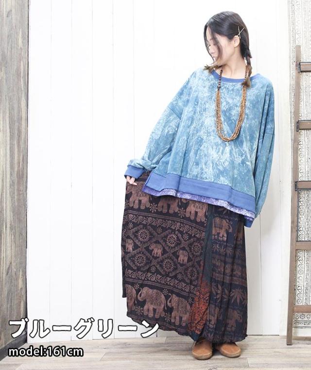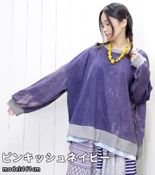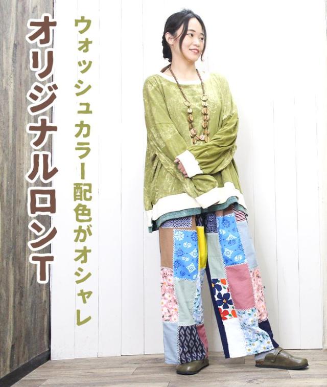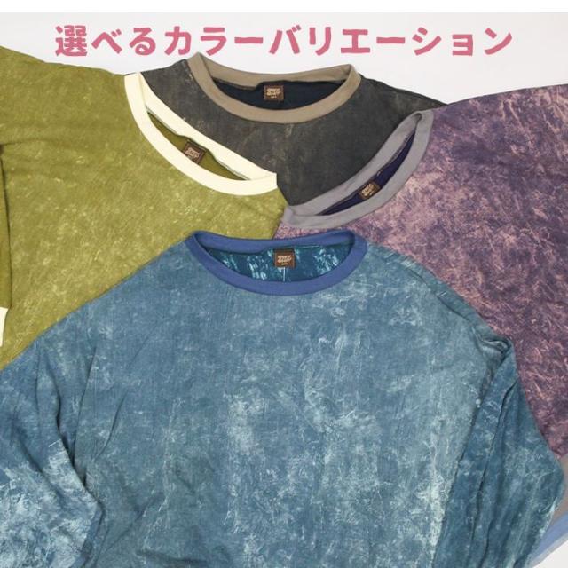 長袖 Tシャツ ボックスシルエット クルーネック ボートネック 【SPT】 配色レイヤード ウォッシュ コットン ゆったり ロンT 無地 切り替え 大きめ ビッグT ストーンウォッシュ
