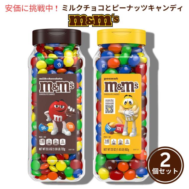 M&M’SミルクチョコレートとM&M’Sピーナッツで楽しもう!カラフルなキャンディシェルに包まれたクリーミーなミルクチョコレートと、サクサクしたローストピーナッツにリッチなチョコレートがコーティングされたお菓子が、48.5オンスのリサイクル可能で再封可能なバルクキャンディジャー2個に便利にパッケージされています。