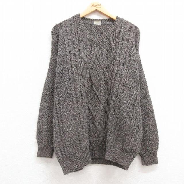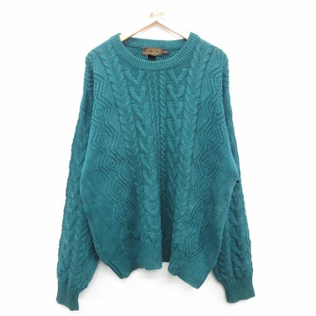 古着 ギャップ GAP 長袖 ケーブル セーター メンズ 90年代 90s Vネック 緑 グリーン spe XLサイズ 中古 ニット トップス 中古 古着
