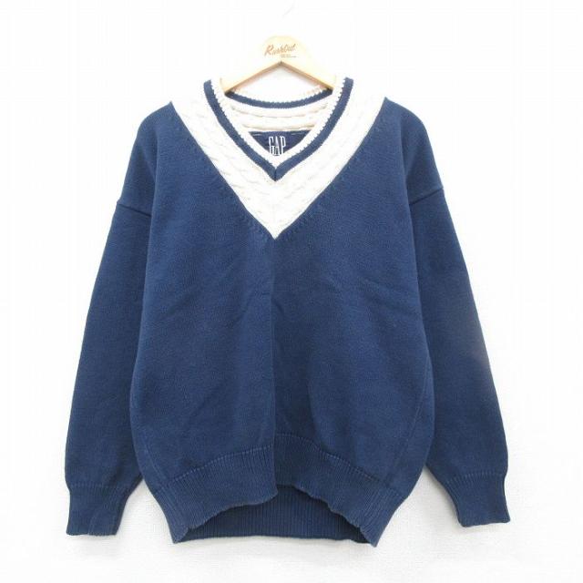 【商品名】 XL★古着 ギャップ GAP 長袖 ケーブル セーター メンズ 90年代 90s Vネック 緑【spe】
