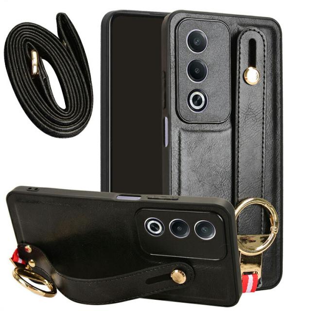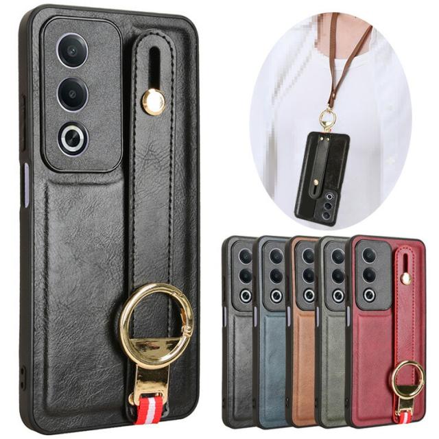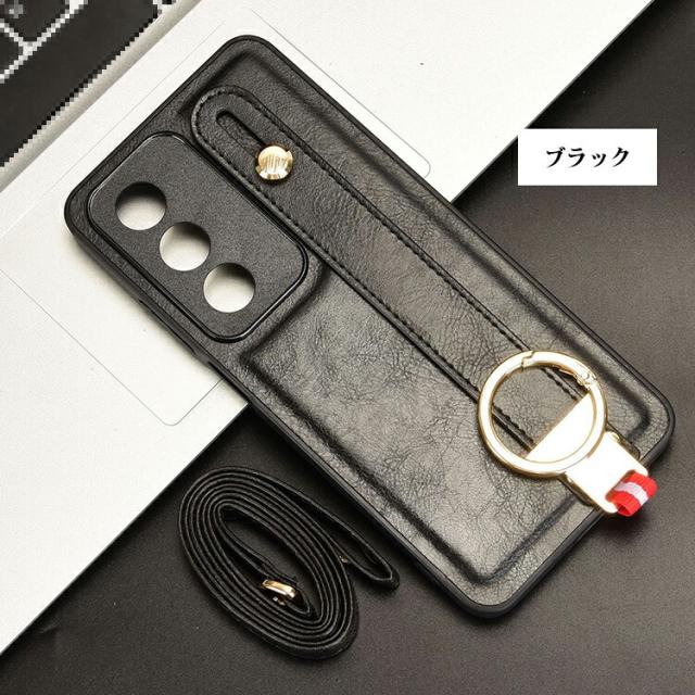 OPPO A3 5G ケース 耐衝撃 カバー スマホショルダー PUレザー+プラスチック ショルダーストラップ 肩掛けベルト付き 持ち手 ベルト 落下防止ベルト リング付き スマホベルト 片手操作 取っ手 シンプル オッポ A3 5G