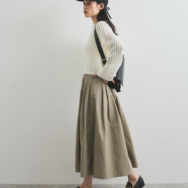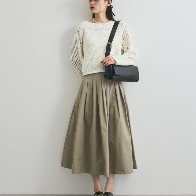 春らしいオンオフどちらでも活躍するタックプリーツフレアスカート。