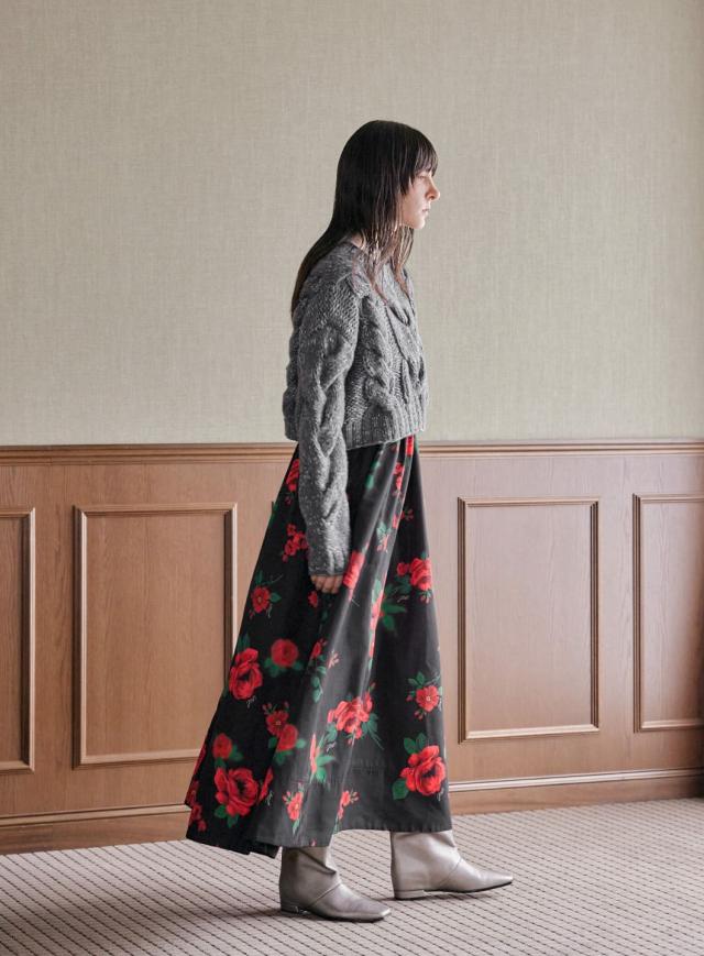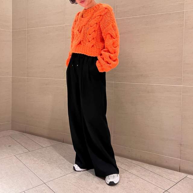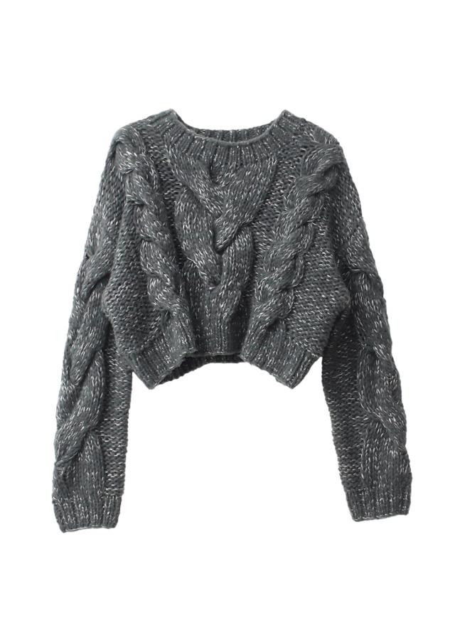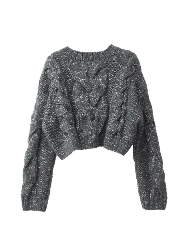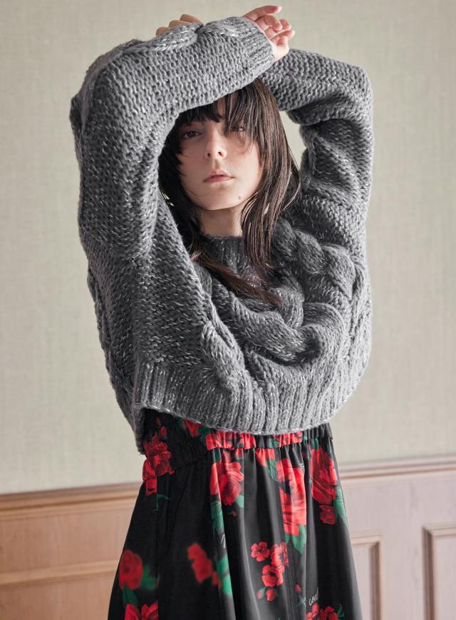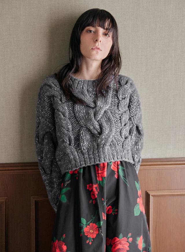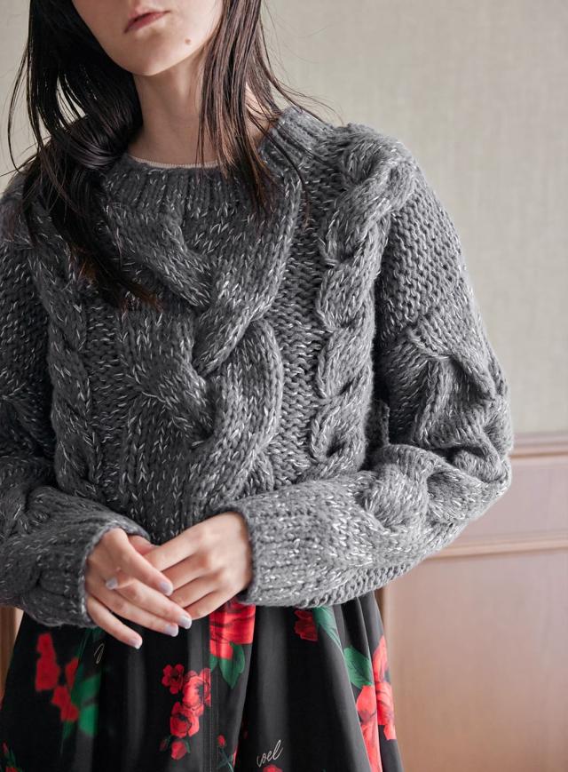 ハンドメイドでしか編むことのできない太番手の糸でふんわりと編みあげたケーブルニット。