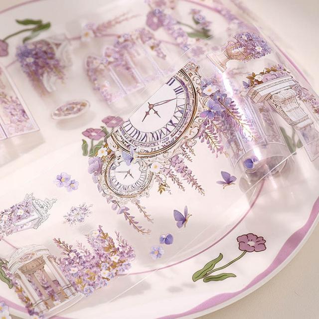 型抜き クリアテープ 幅広70mm ダイカット テープ ワイドタイプ コラージュ素材 ローズ 藤の花 薔薇 ひまわり 窓 花柄 枠 フレームワーク コラージュ 素材 透明 テープ 剥離紙 PET 耐水 シール イラスト ステッカー 紫 デコレーション 手帳 日記 手紙 アレンジ DIY