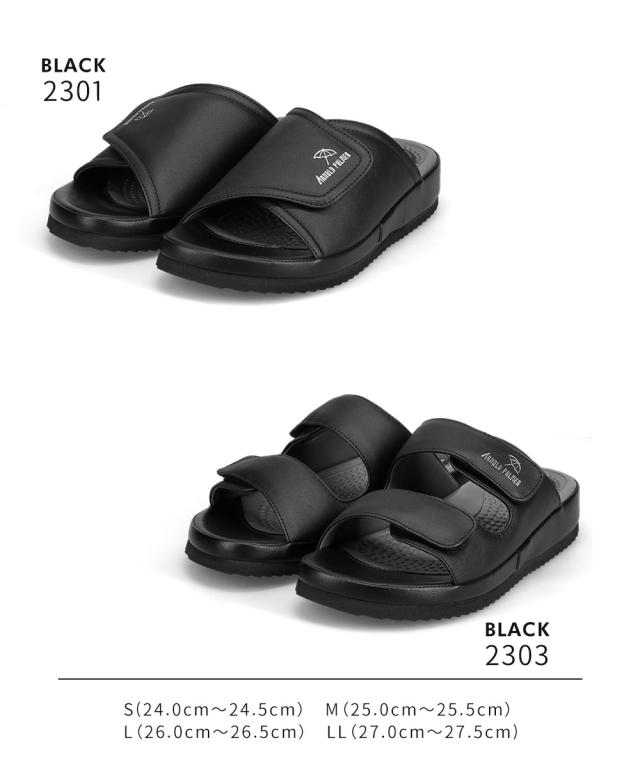 アーノルドパーマー ビジネスサンダル オフィス サンダル メンズ ヘップサンダル つっかけ スリッパ コンフォート 足つぼ スライドサンダル オフィスサンダル 面ファスナー 調整 防菌 防臭 広幅 幅広 屈曲性 黒 ブラック Arnold Palmer 2301 2303
