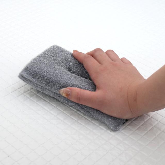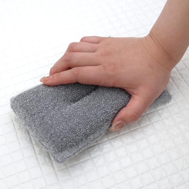 しっかりと目が詰まったループ糸が浴槽の汚れを絡めとります。水だけで汚れが落ちるので入浴ついでに掃除もできます。洗剤が不要で洗い流す必要がなく、時短とエコを両立できる便利なスポンジです。