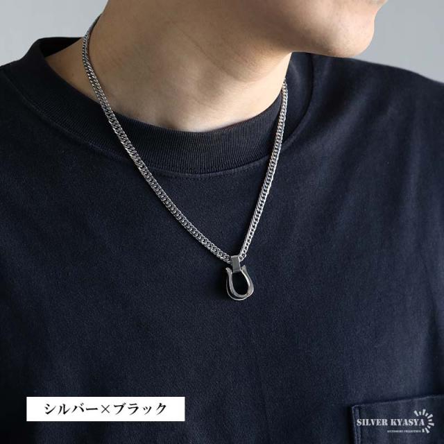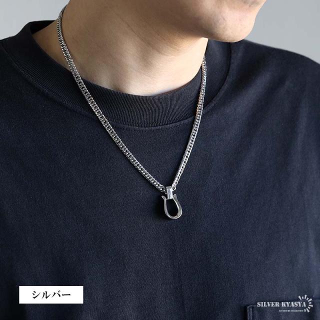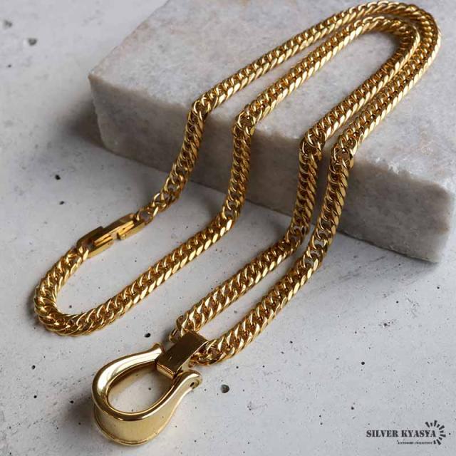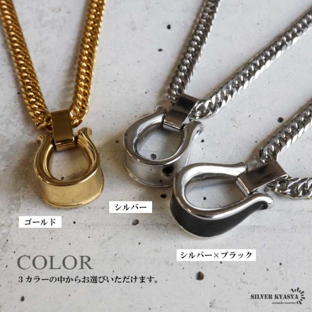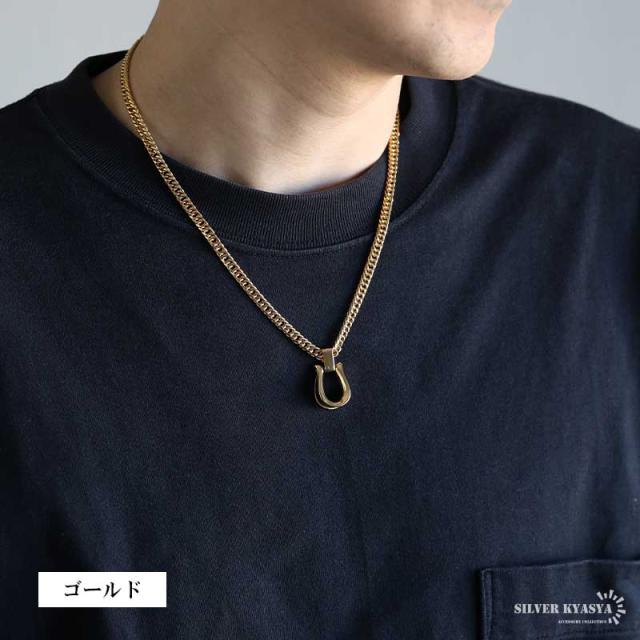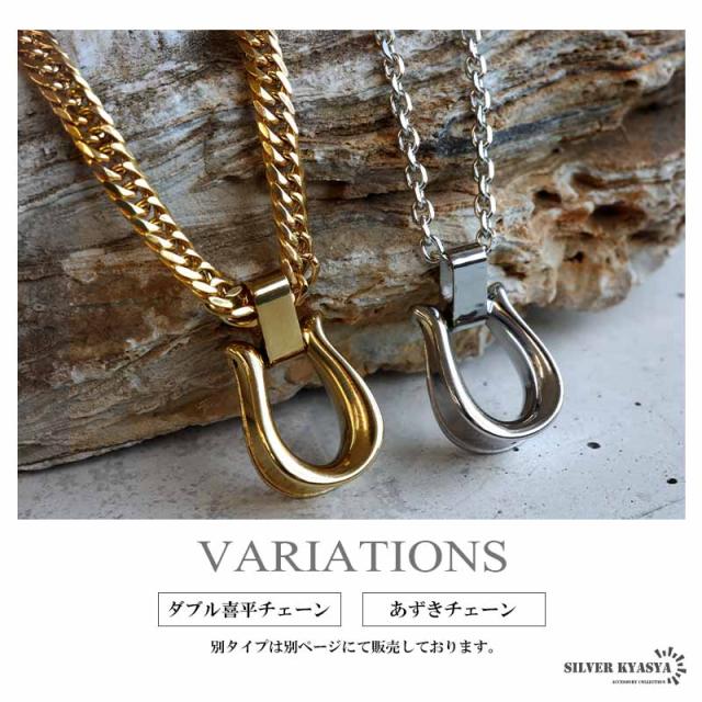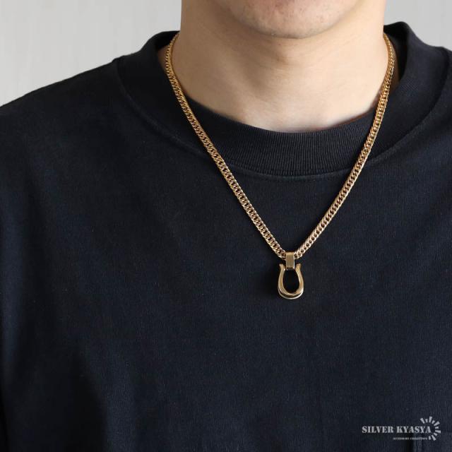 ステンレス 馬蹄ネックレス ホースシューネックレス ダブル喜平チェーン ゴールド シルバー 18KGP メンズ 金属アレルギー対応