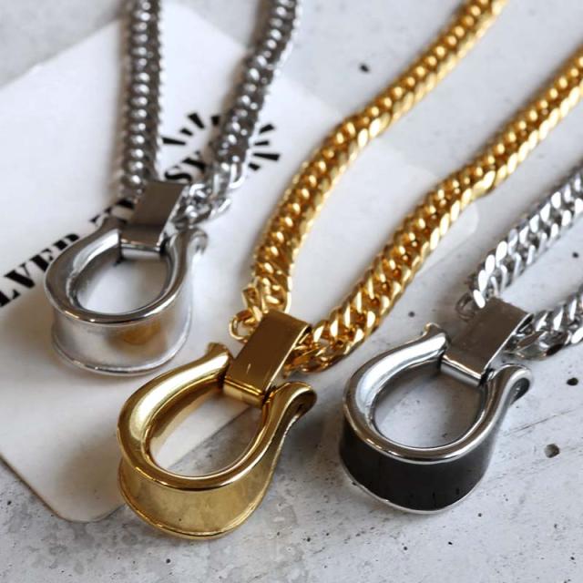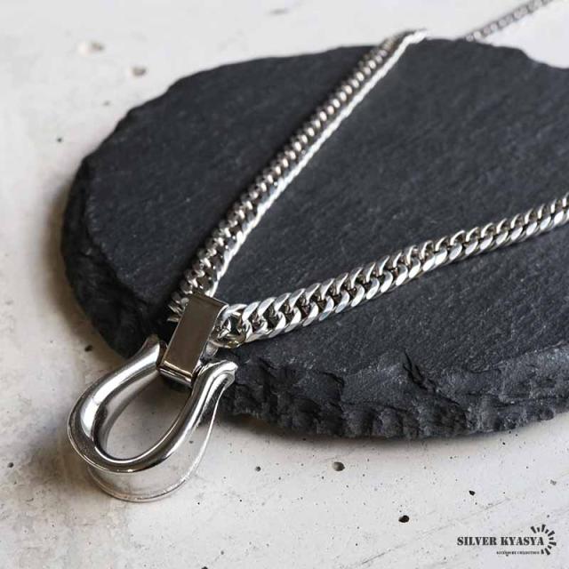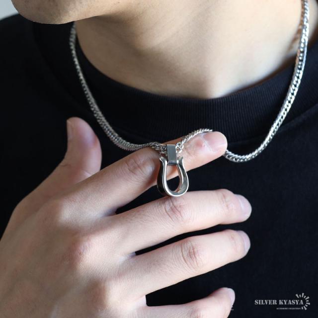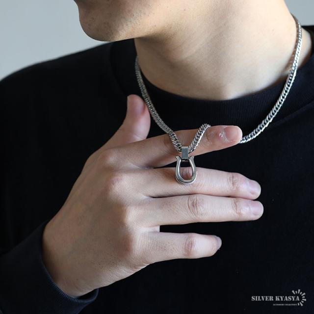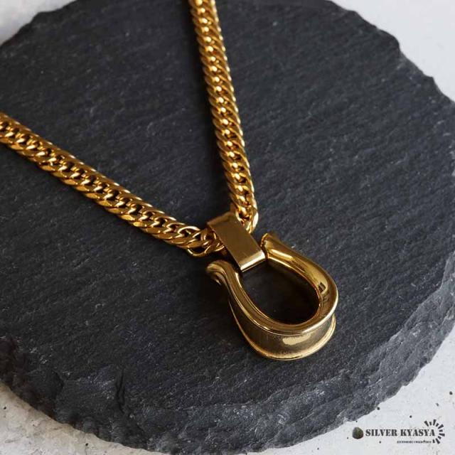 ”馬の蹄”をかたどったホースシューモチーフのネックレス。高密度のダブル喜平チェーンと厚みのあるトップが相性抜群!アクセントに丁度良く、首元で存在感を放ちます。